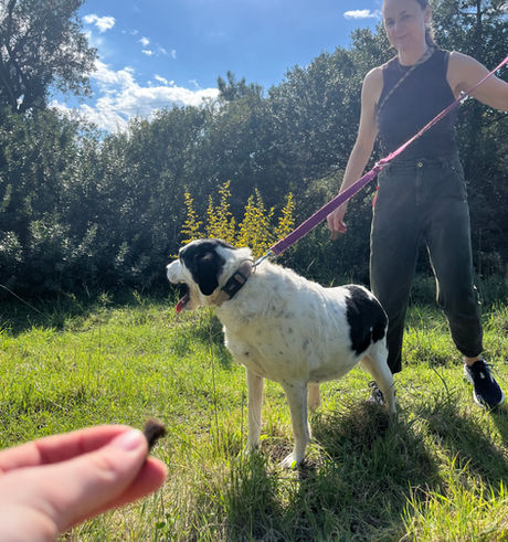 Mit anderen Hunden ist Jola grundsätzlich verträglich und kann ihre Grenzen klar, aber angemessen kommunizieren. Besonders mit Rüden spielt sie gerne auch mal etwas rauer. 🫢